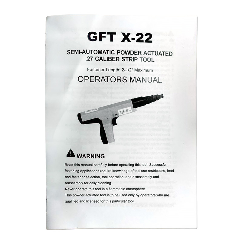 Монтажный пороховой пистолет GFT X22  изготовлен из ударопрочного материала, а металлические детали обработаны на высокоточном оборудовании.