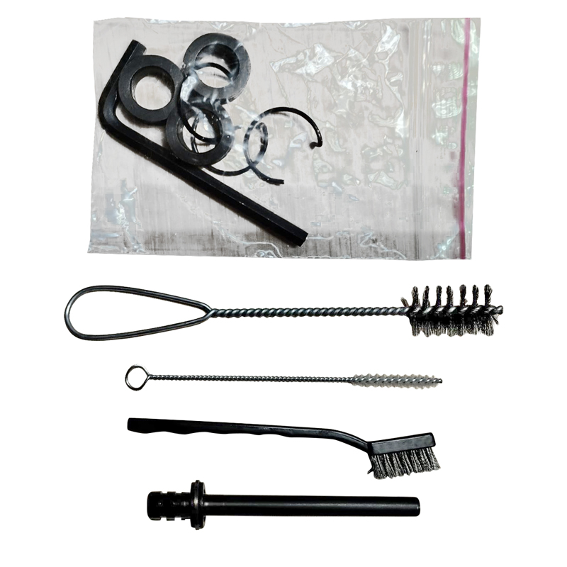 В комплекте с пистолетом поставляется инструмент для технического обслуживания, запасные части, инструкция по эксплуатации на русском языке, кейс для хранения.