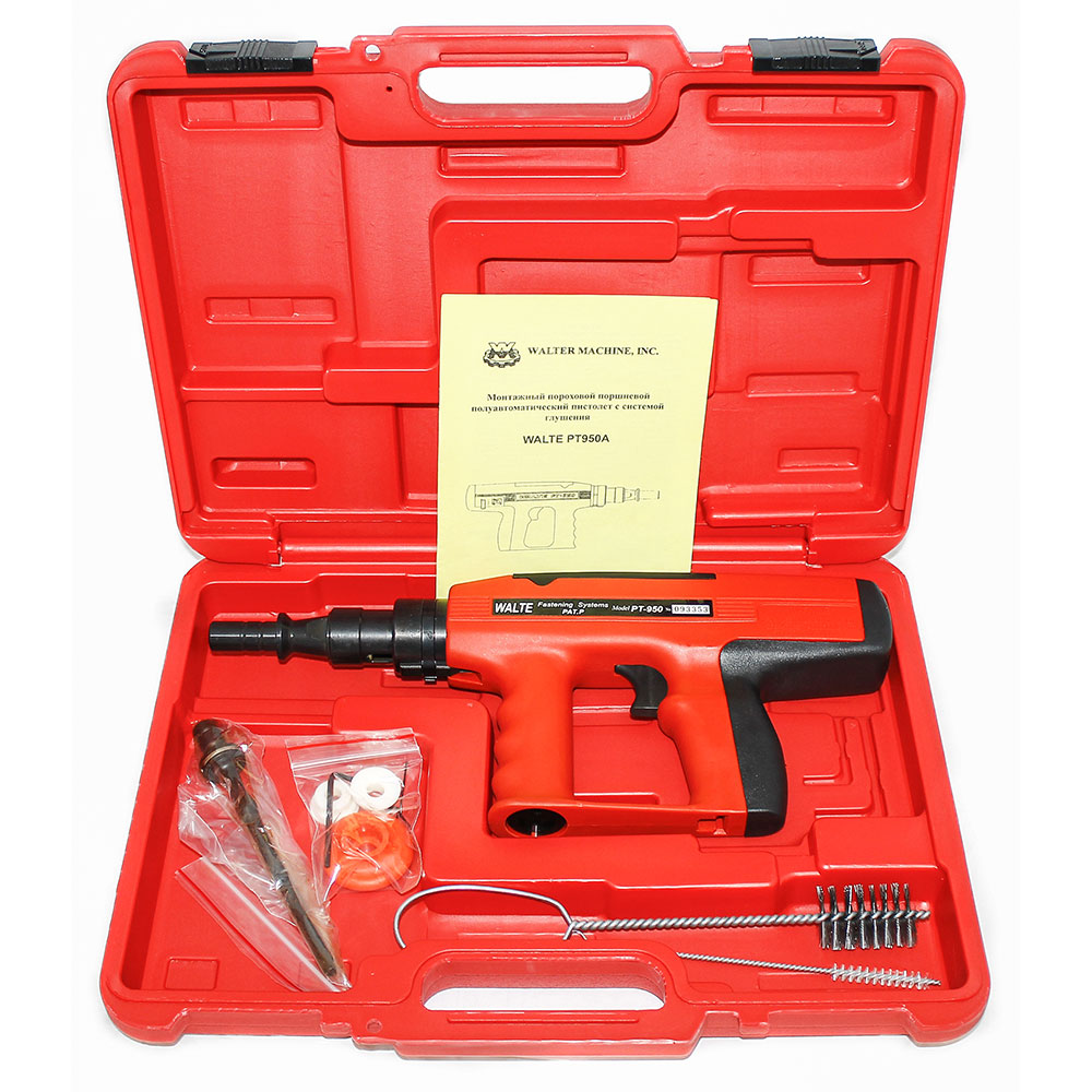 Пороховой монтажный пистолет WALTE РТ-950А по типу— поршневой, многозарядный, ударопрочный.