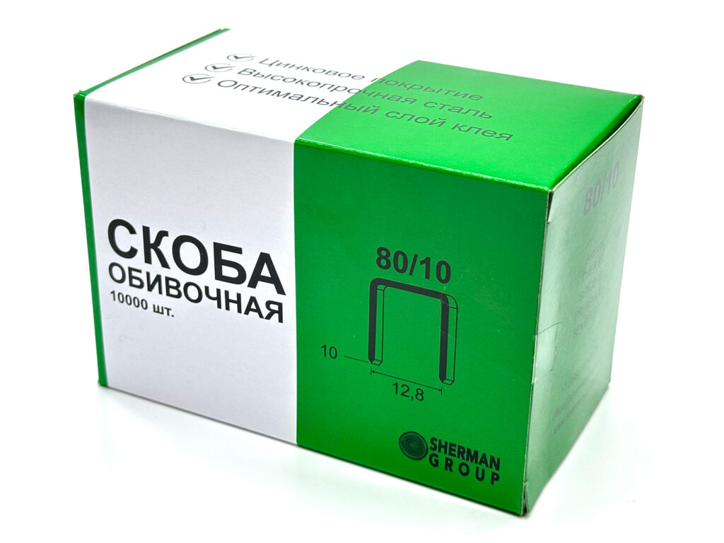 Обивочная скоба тип А (80) широко используется на мебельных производствах для обивки и драпировки. Широкая спинка (12,8 мм) позволяет прочно закрепить материал, не повредив его.