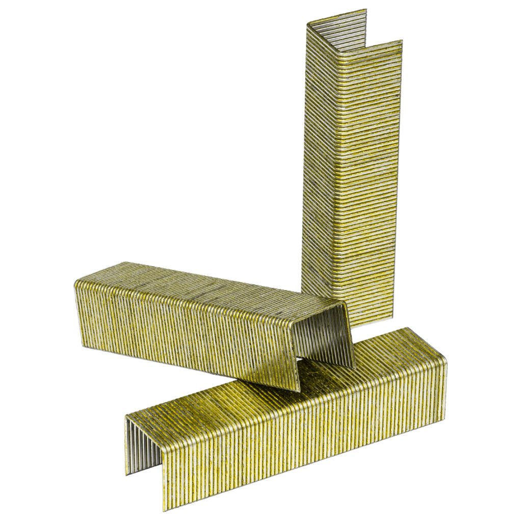 Cкобы оцинкованы, что гарантирует длительный срок службы и обработаны оптимальным слоем клея, что исключает поломку инструмента.
