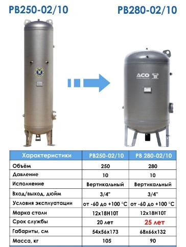 Завод гарантирует срок службы ресивера РВ 250-02/10 в течение 20 лет при условии соблюдения правил эксплуатации.