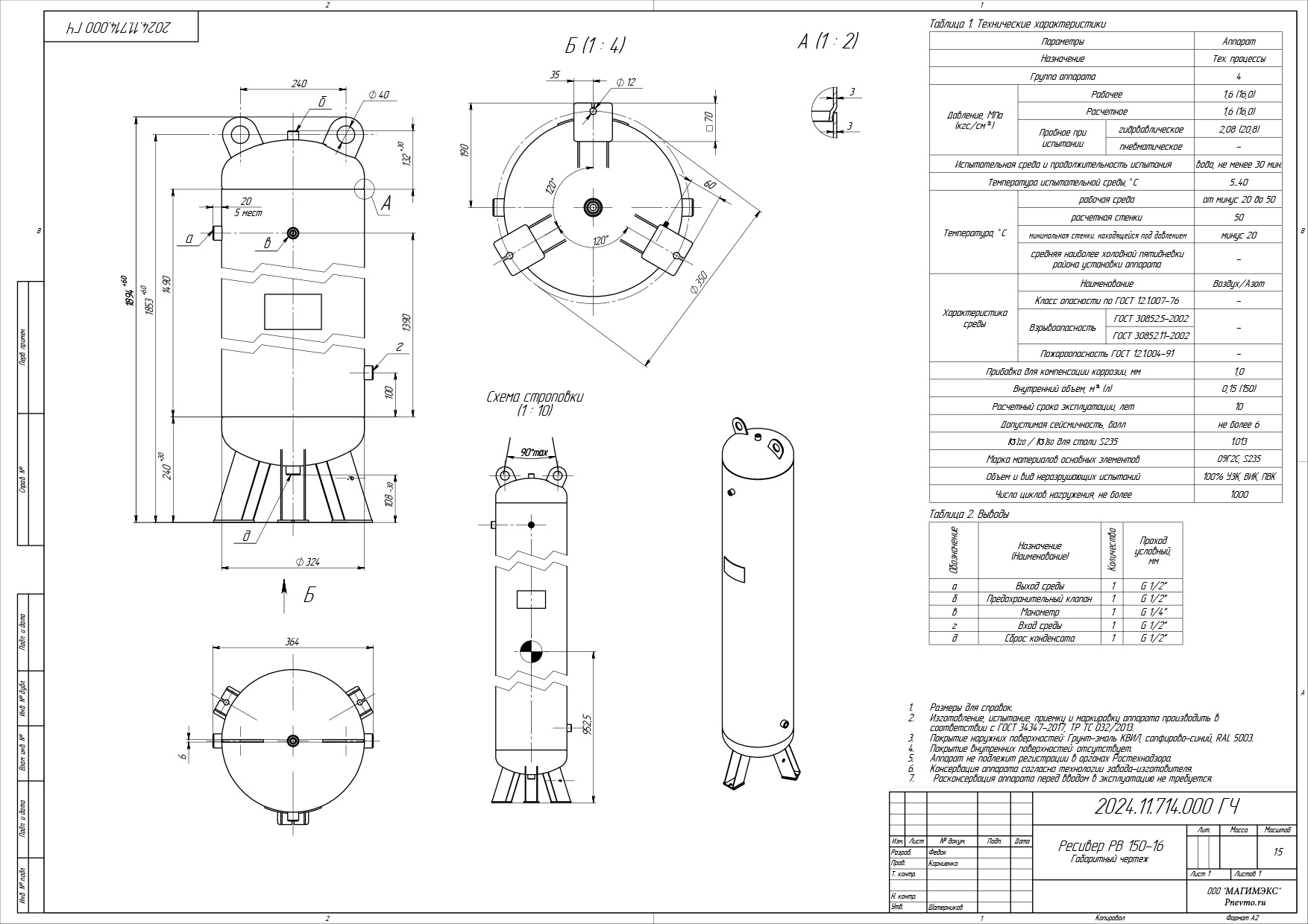 Паспорт сосуда работающего под давлением прилагается