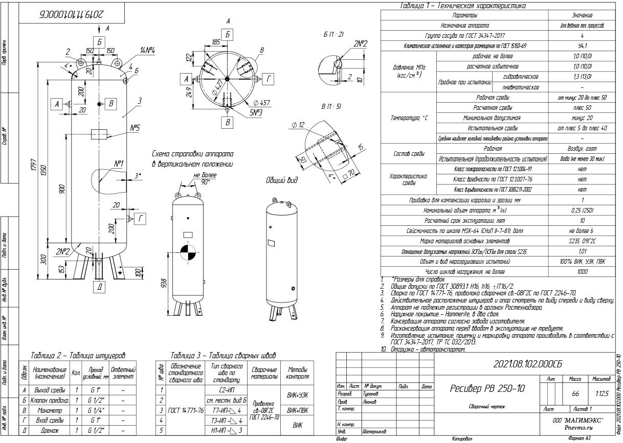 Ресивер воздушный DNT РВ-250, 10 бар l pnevmo.ru
