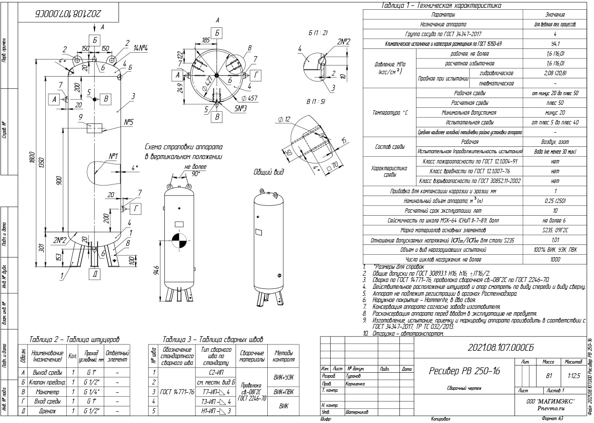 Паспорт сосуда работающего под давлением прилагается