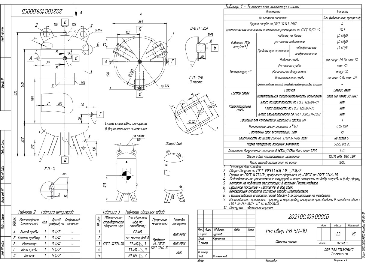 Паспорт сосуда работающего под давлением прилагается
