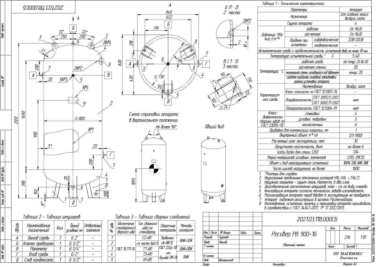 Ресивер воздушный РВ-900, 16 бар
